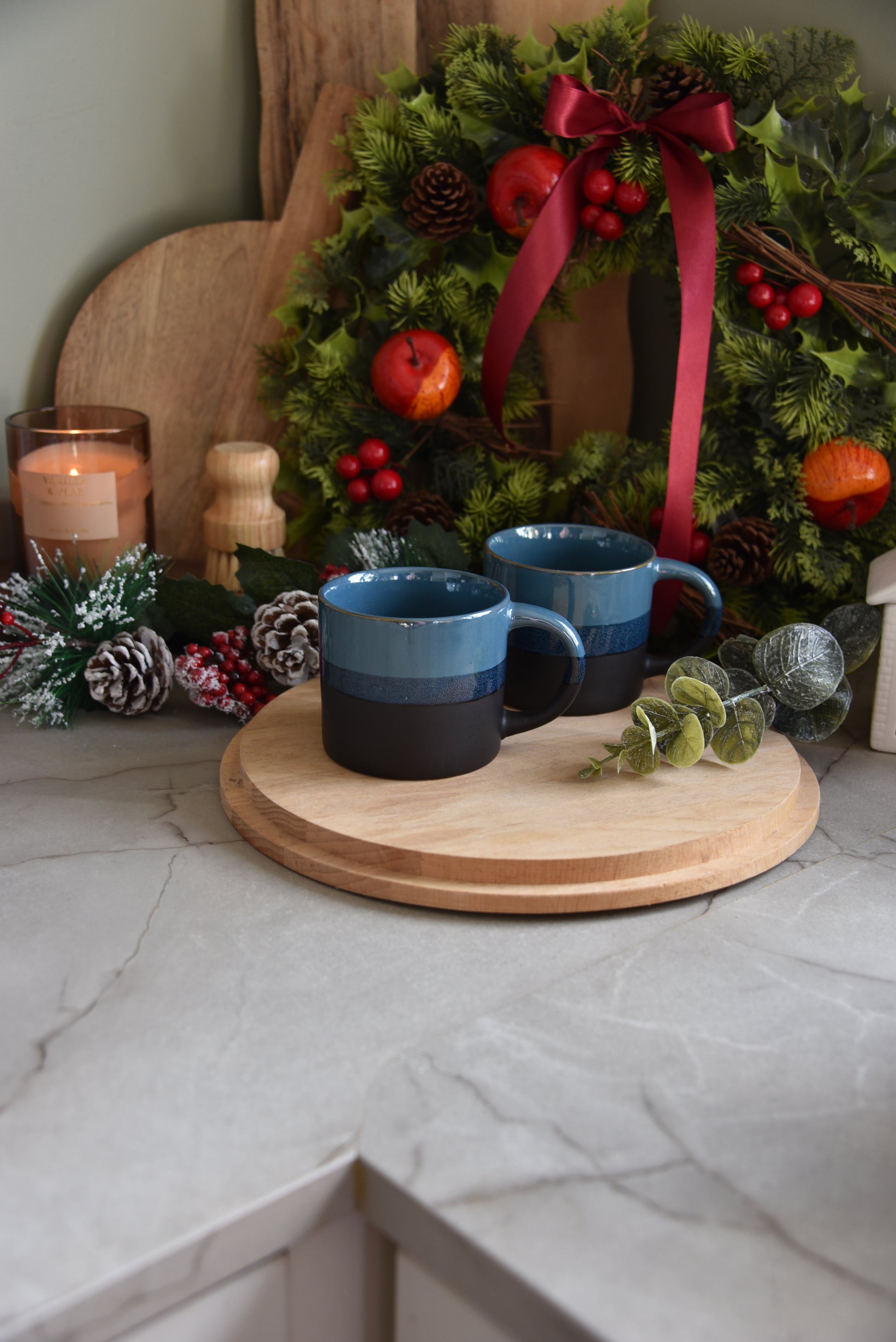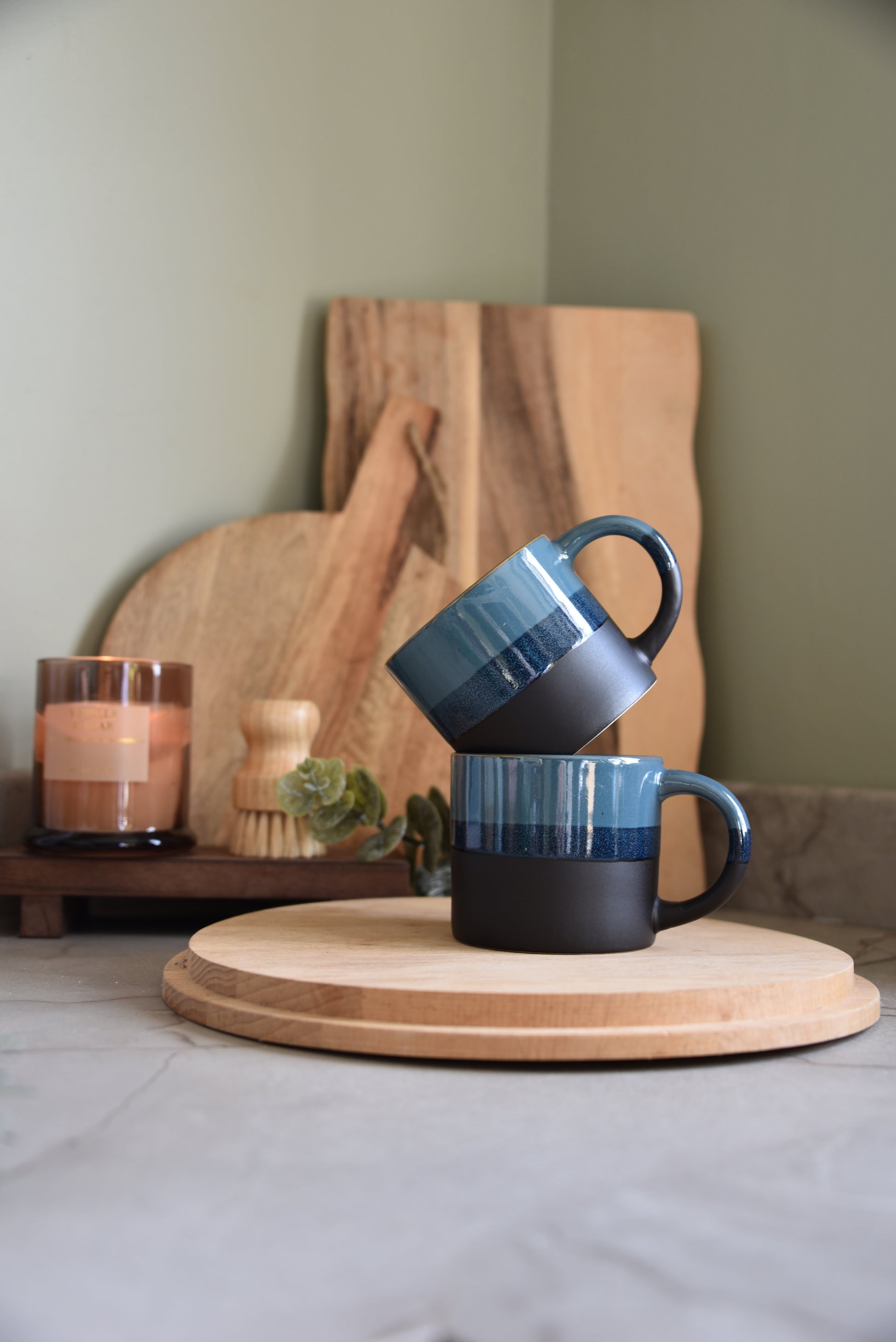 These beautiful ceramic mugs are finished with unique glazed effect in varying tones of navy and blue. Influenced by the depths of the ocean, this glazed finish mimics the tranquil beauty of the sea shore with its serene appearance.