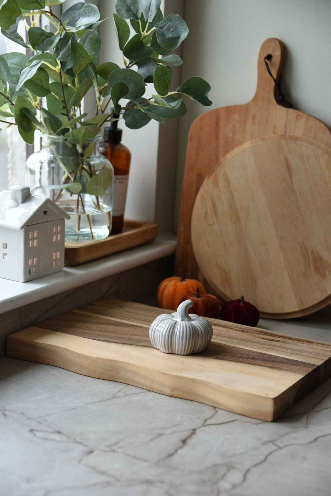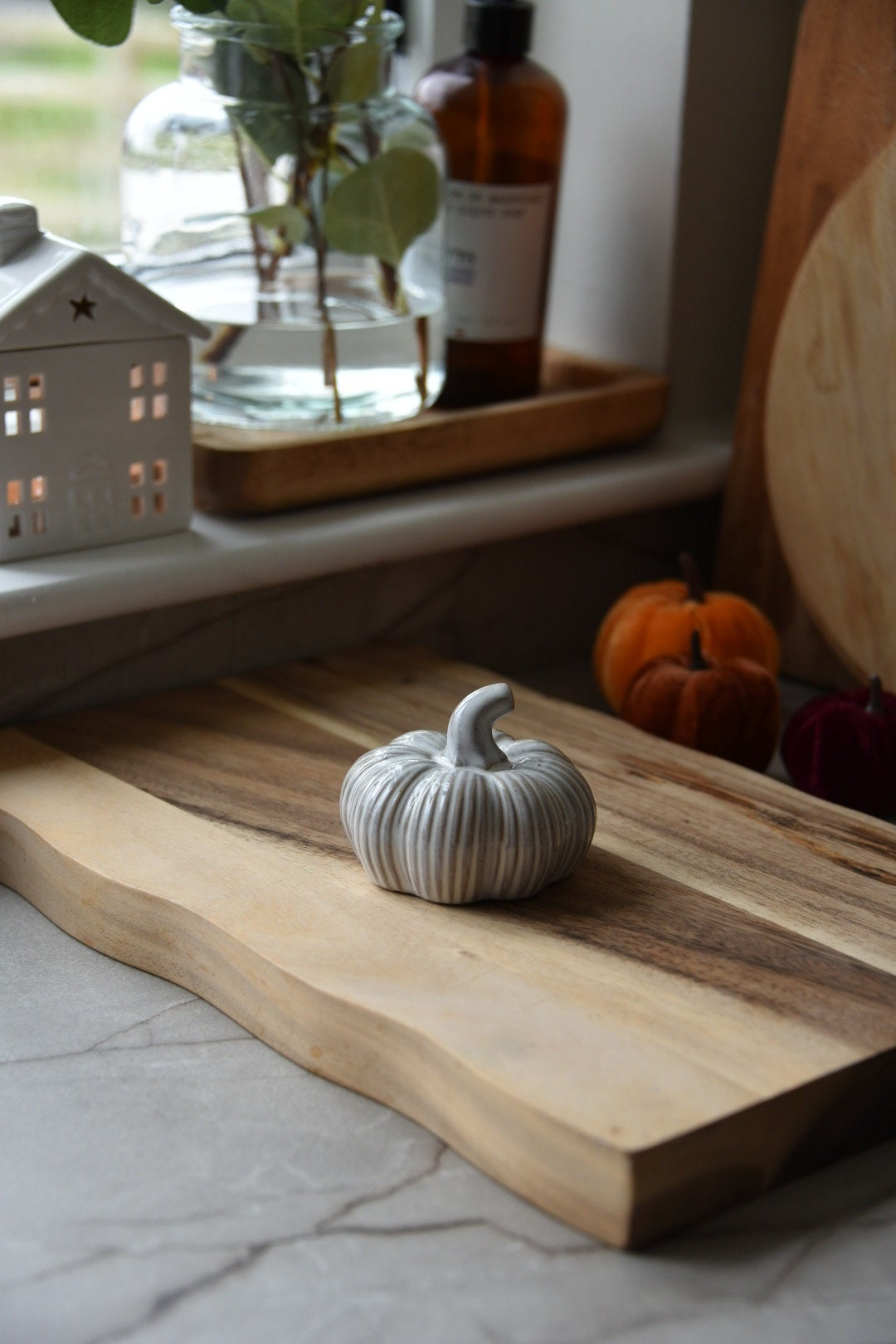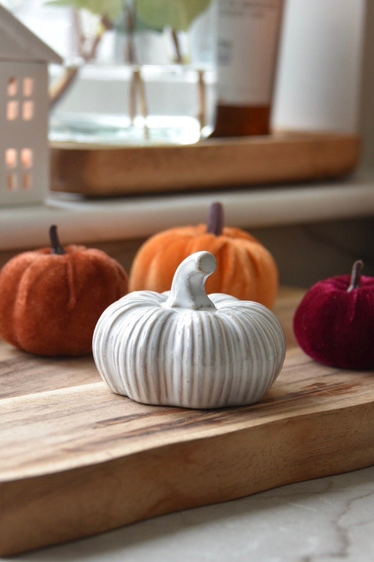 This rustic pumpkin is the perfect addition to any home this Autumn. With its charming design and rustic ribbed finish it will add a touch of warmth to your Autumn decor.